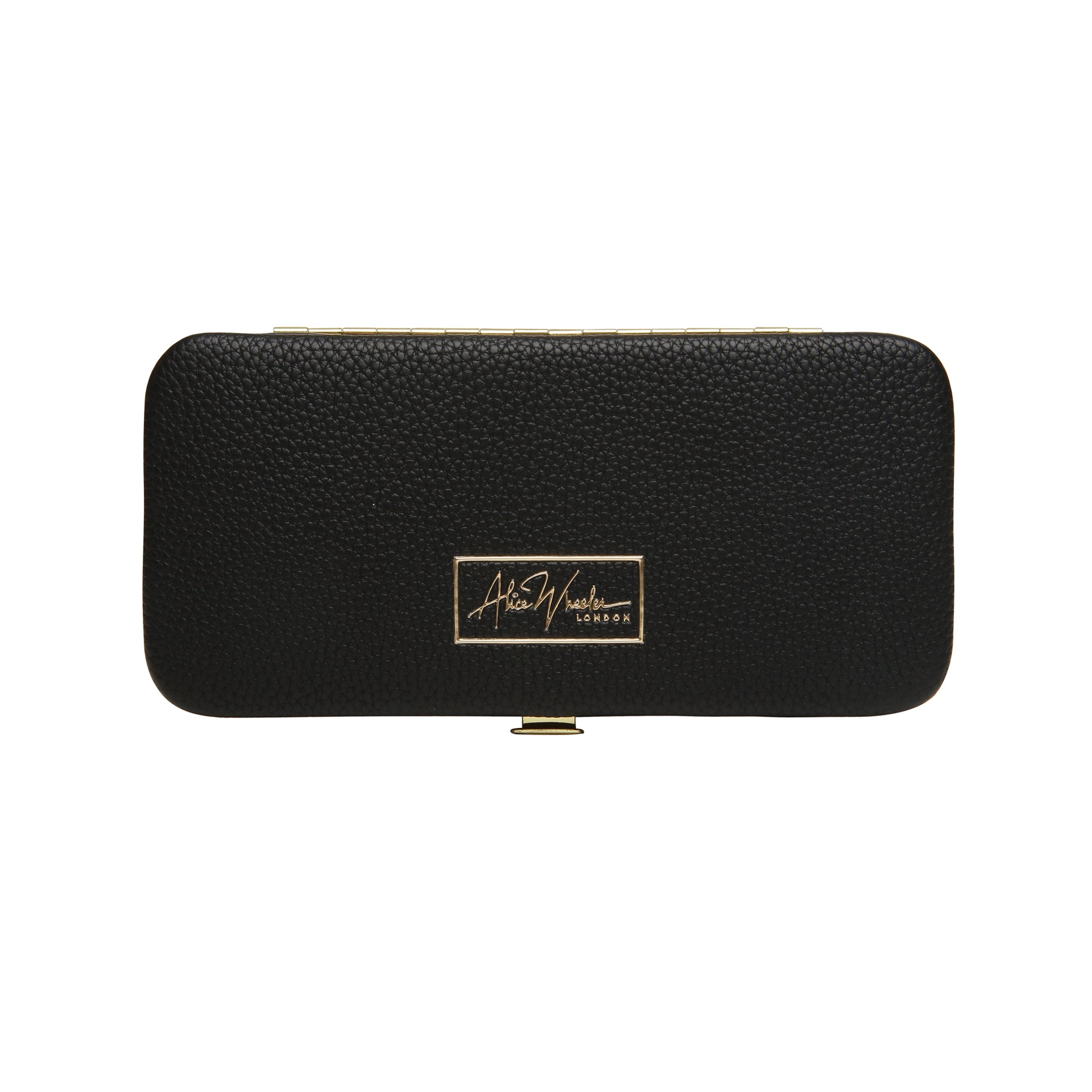 This 5 manicure set, crafted using fine vegan leather and golden-toned metal implements. The case is rigid and has a clip lock clasp and perfect for to take on your travels or using at home.