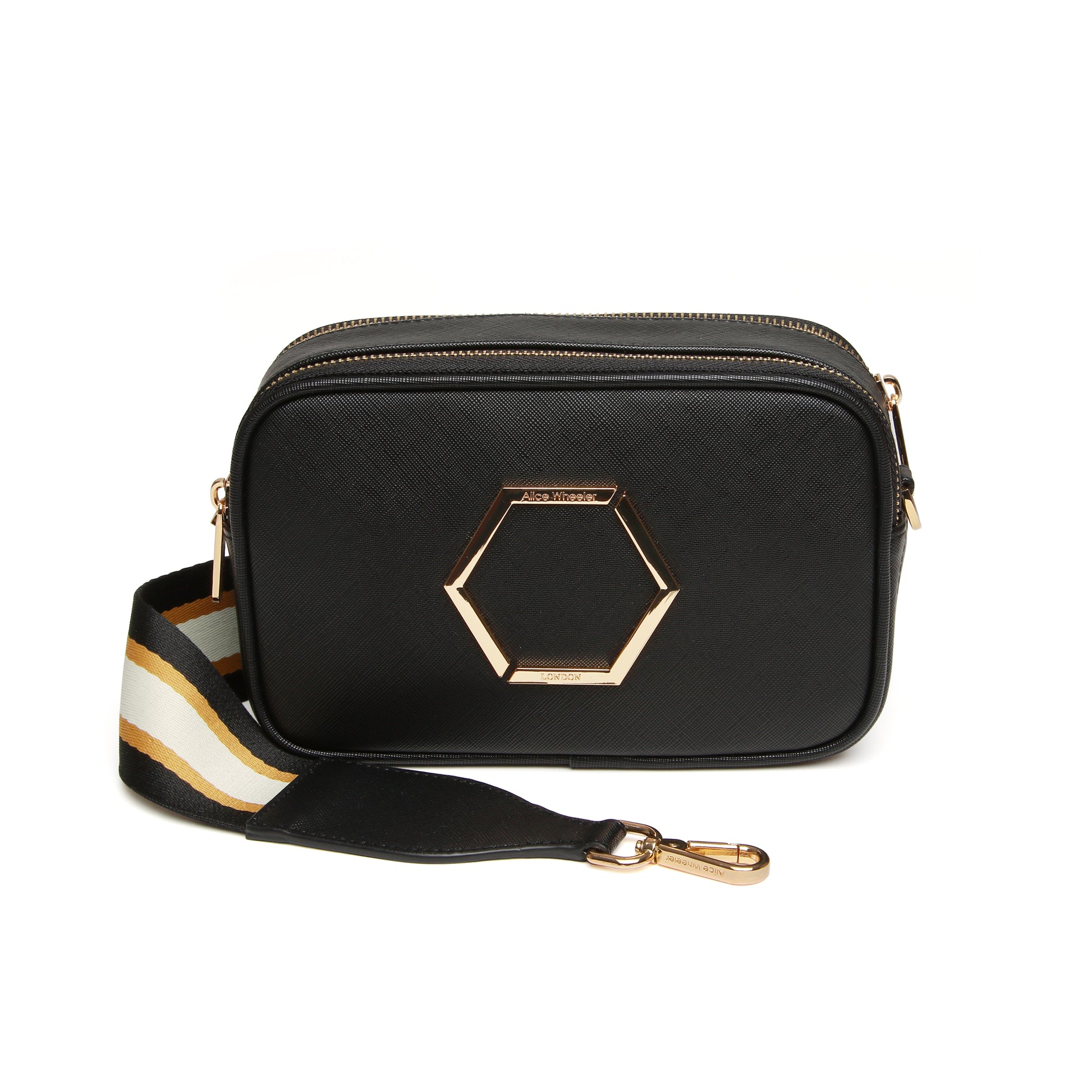 Introducing the Pimlico Honeycomb Crossbody Bag, an amazingly versatile bag that can elevate any look with its elegant solid colour and eye-catching tri colour strap. The bag showcases our new metal honeycomb logo.