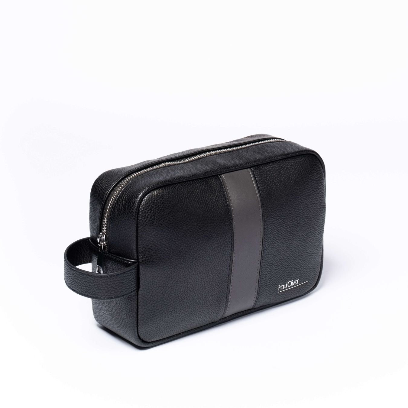 Mens Luxury Zip Wash Bag With Carry Handle And Graphite Stripe - by Paul Oliver