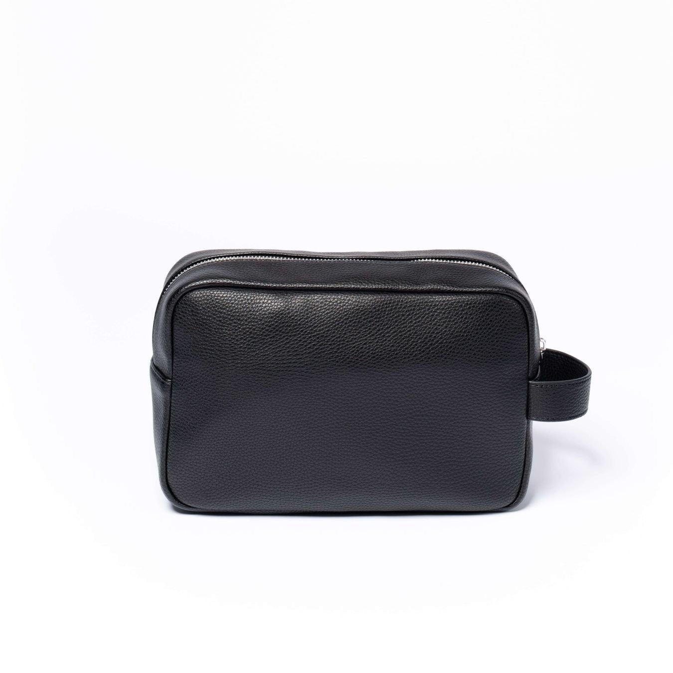 Luxury zipped wash bag with carry handle, with graphite stripe.