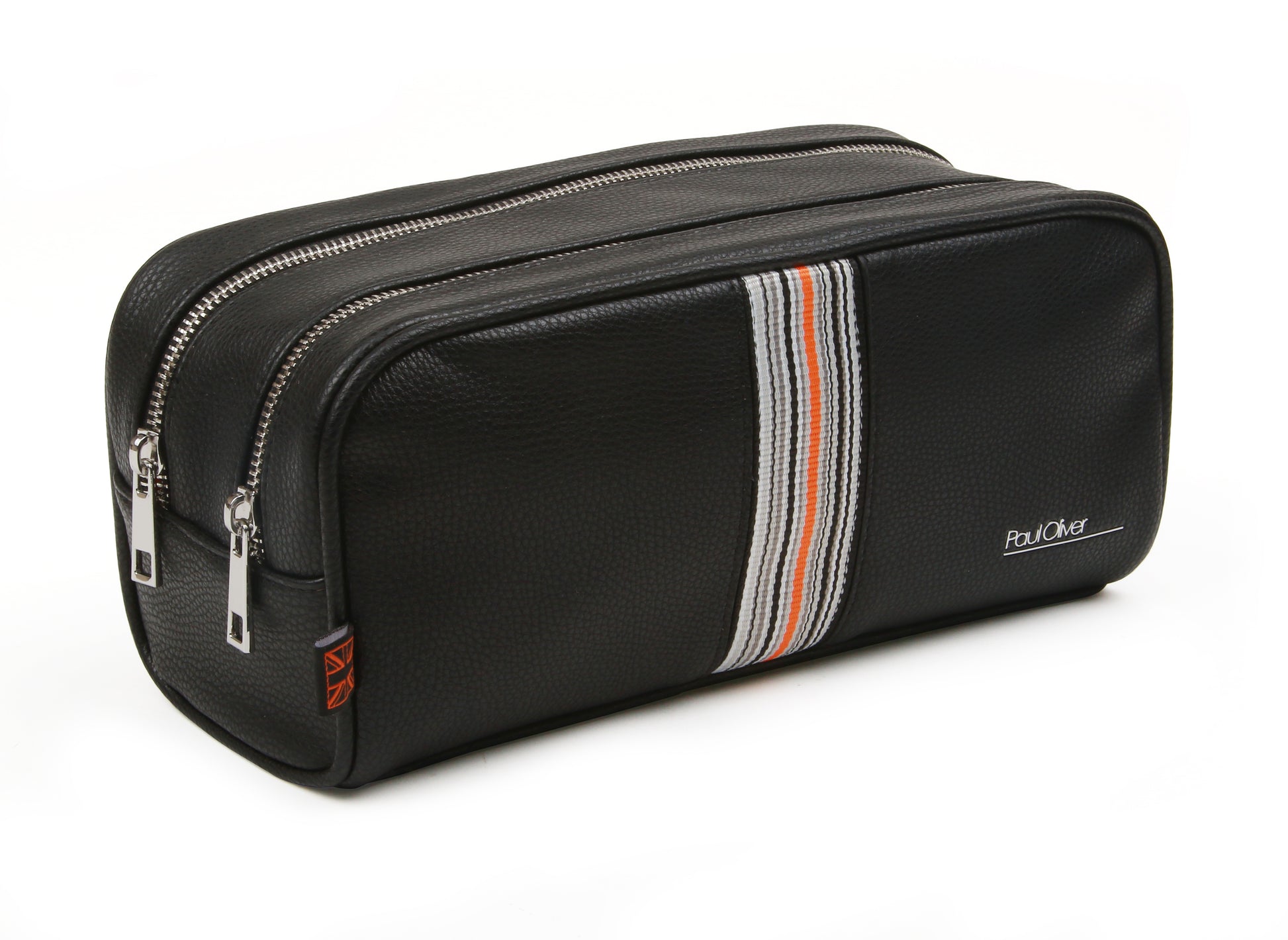 Mens Luxury traditional shaped wash bag with orange stripe - by Paul Oliver
