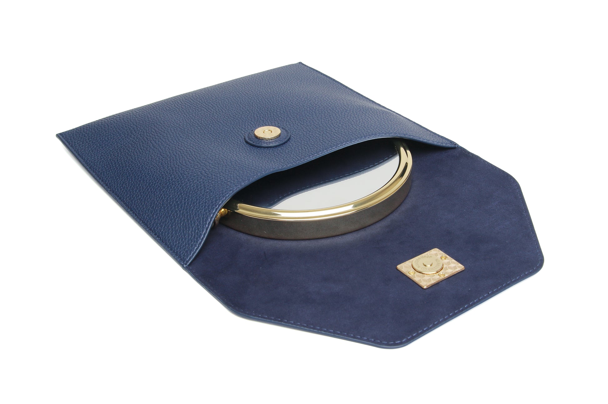 Navy Luxury Travel Mirror and Case with 7x magnifying