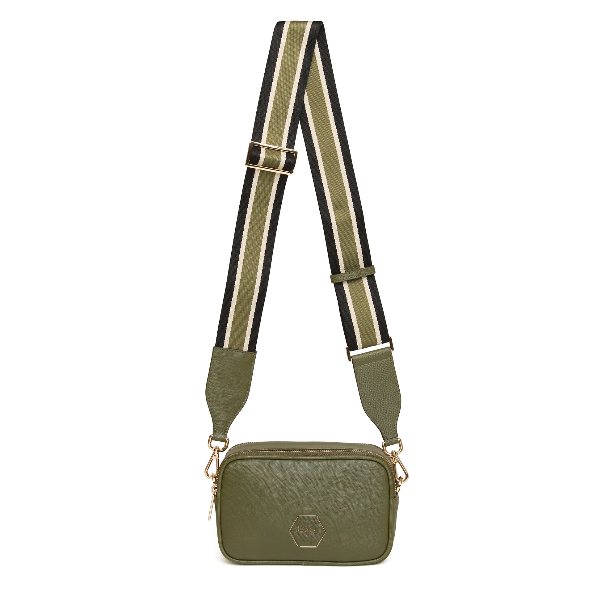 The bag comes with a fashionable tri colour patterned strap that can be adjusted to your preferred length and style. You can wear it crossbody or over the shoulder or switch it up with other patterns and classic straps available on our website.