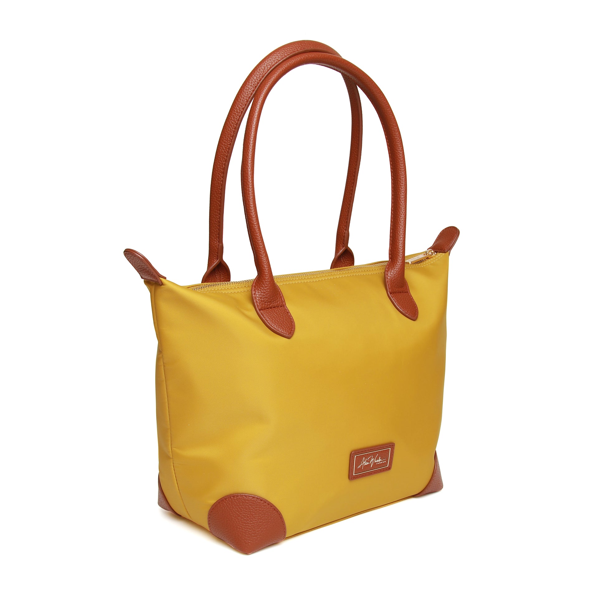 The perfect Purley Tote bag, crafted in super lightweight material with tanned vegan leather accents and designed to foldaway. The bag has a generous compartment, we use metal zipped fastening for added security, the compartment is fully lined and includes a large internal zipped pocket and further pockets for keeping all essentials in order.