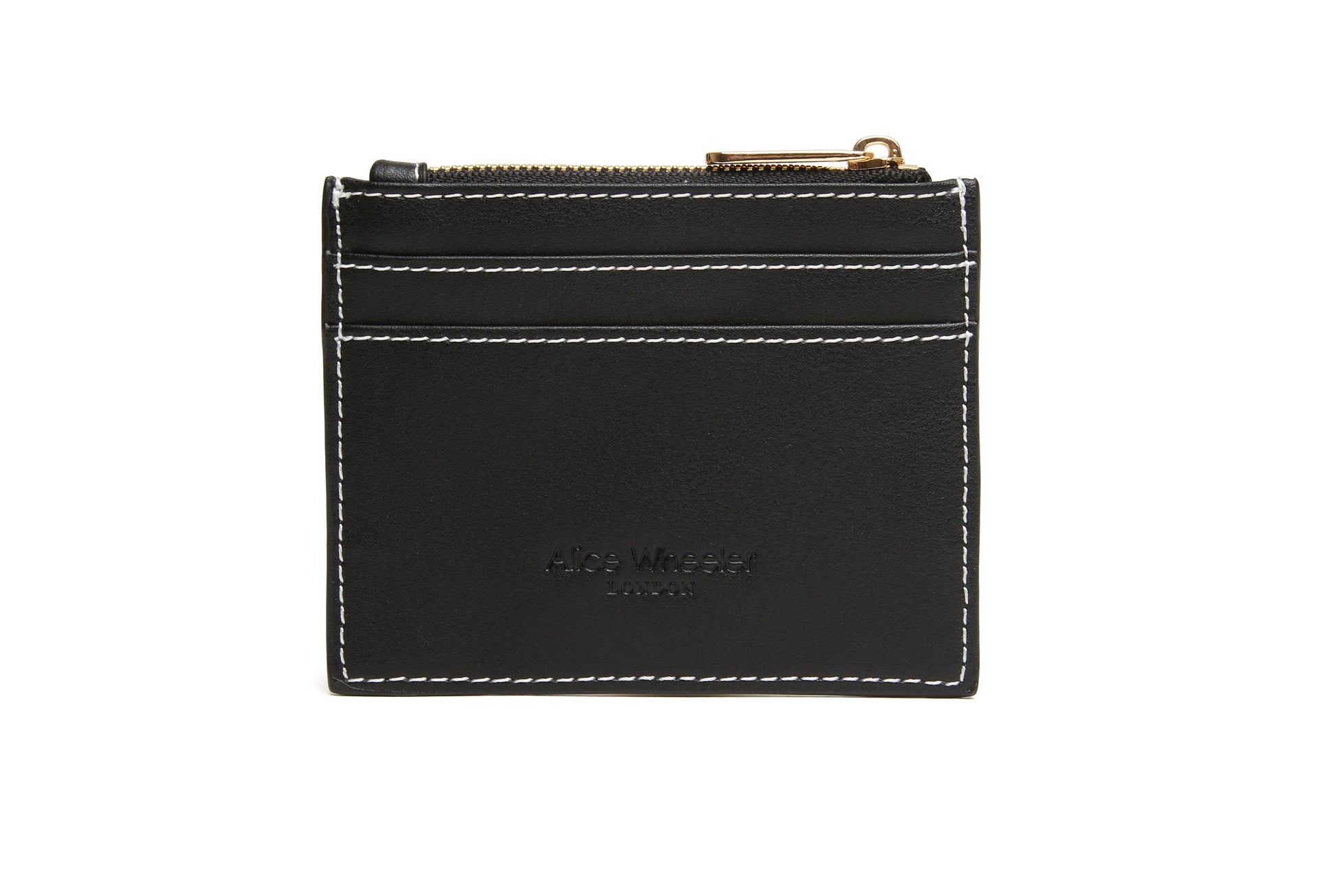 The secure zip closure keeps everything in place, while the gold-toned Alice Wheeler branding adds a refined finishing touch. Whether you're running errands or heading out for the evening, the Sloane Card and Coin Purse is a minimalist staple that fits effortlessly into your lifestyle.